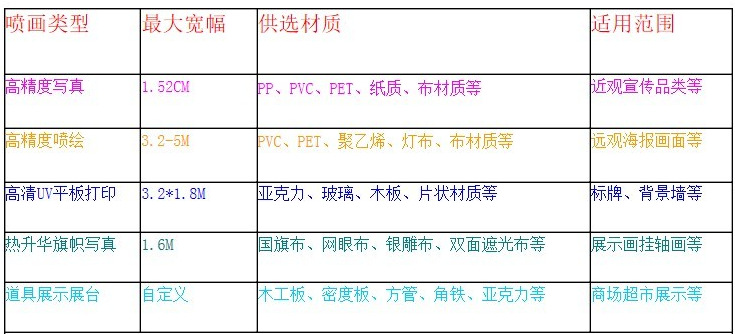 【 高清户内写真 】110克PP背胶写真、130克PP背胶高精度写真、户内150克合成纸写真、高清艺术布、180克相纸写真、户内透明片印刷、户内高清背喷灯片印刷、户内可移背胶、户内带胶灯片写真、可移背胶写真、橱窗PP纸海报、丝光绸缎布、化纤油画布打印、数码灯片、数码相纸等高清写真、KT板双面吊旗、雪弗板围边写真中空板标牌、X展架、易拉宝、拉网展架、注水旗、促销台等等
